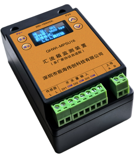 我公司的汇流箱智能智能监测单元,拥有自主知识产权,内置上百家汇流箱通讯协议,可以任意切换设置更改对应汇流箱厂家的通讯协议,无需二次开发,已内置阳光、许继、北京意科、科士达、特变电工、山东泰开、金宏威、金霆、深圳拓邦、上海臻和、南自NPV603、安科瑞、珠海瓦特、丰郅、天津首瑞、东方日立、易事特、宁波天安、永联科技、苏州快可、无锡隆玛、常熟开关、北京辰源、中天昱品、诺雅克、四川科陆、西安华旭、西安海裕、金海新源、苏州长风、科华等上百种汇流箱协议。